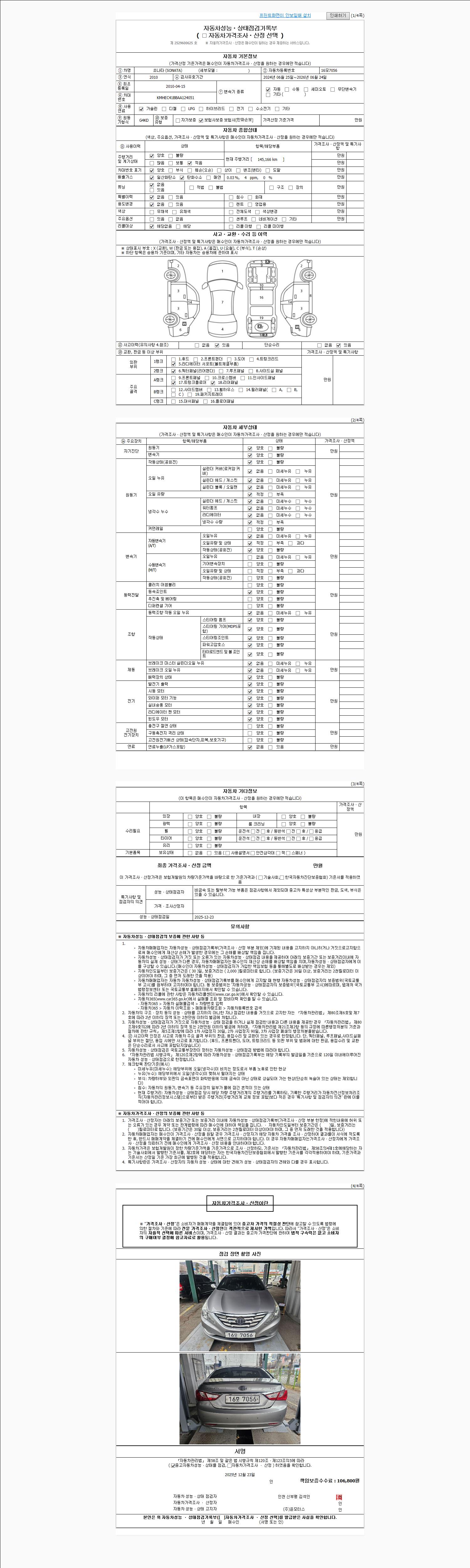 | 사고유무 | 성능기록부 참조 | 제시번호 | 제 2025071010 호 |
