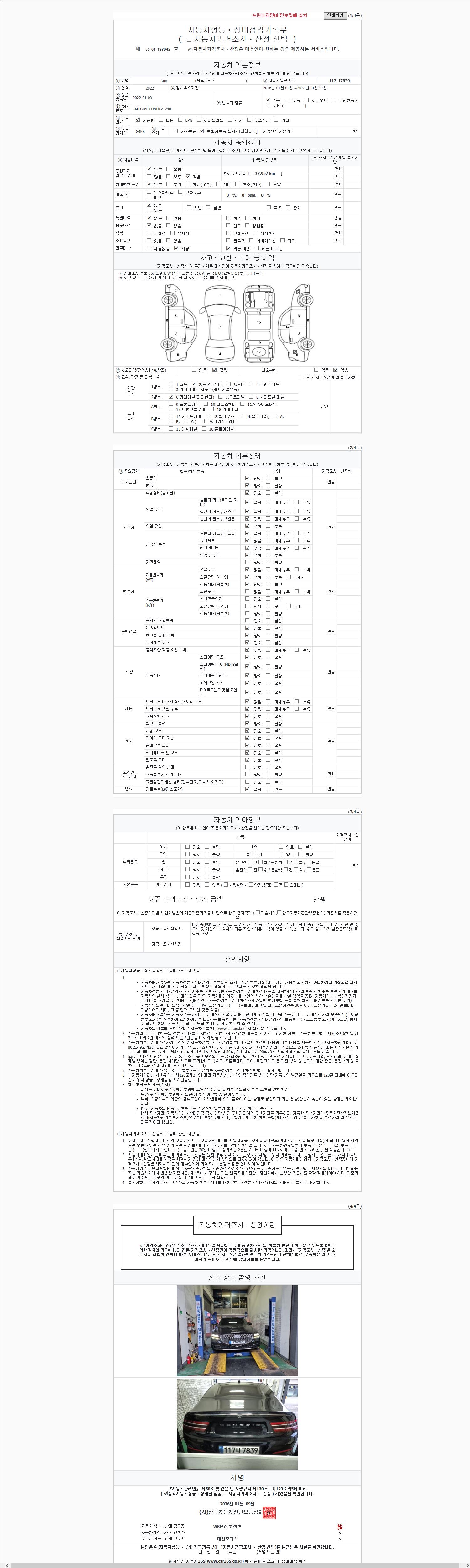 | 주행거리 | 37,957 km | 차량번호 | 117나7839 |