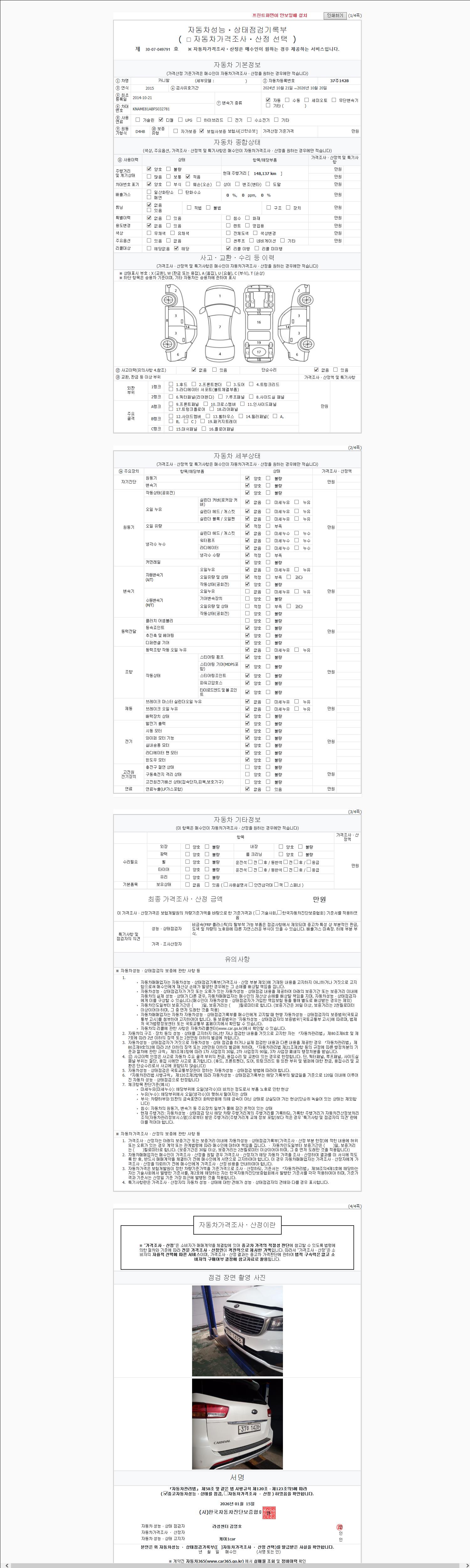 2. 차량 등록증이나 성능점검지 등을 상담자에게 요청및 확인하시고 사전에 미리 점검 하시기를 권유드립니다.