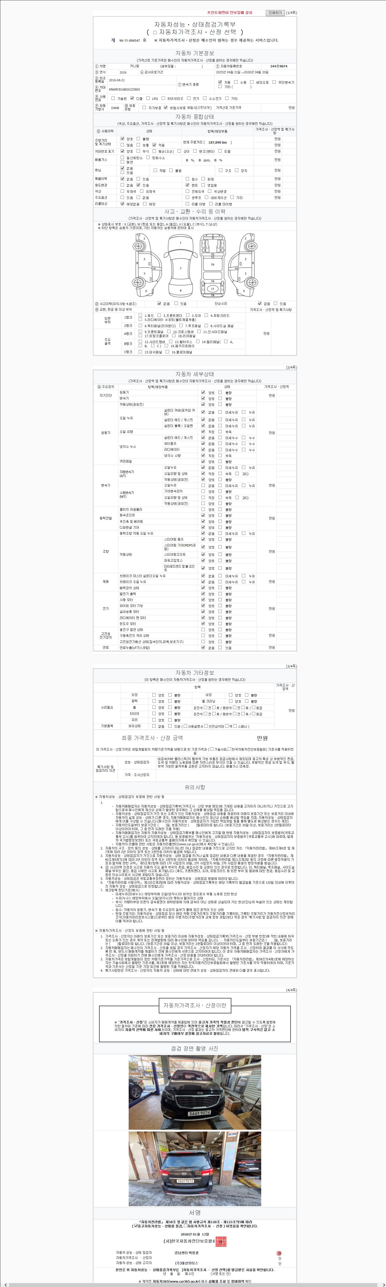 2. 차량 등록증이나 성능점검지 등을 상담자에게 요청및 확인하시고 사전에 미리 점검 하시기를 권유드립니다.