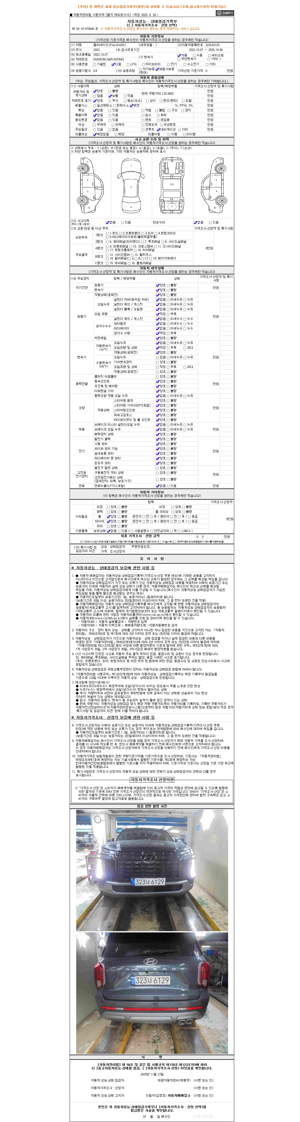 사고유무 성능기록부 참조 제시번호 제 2025160375 호