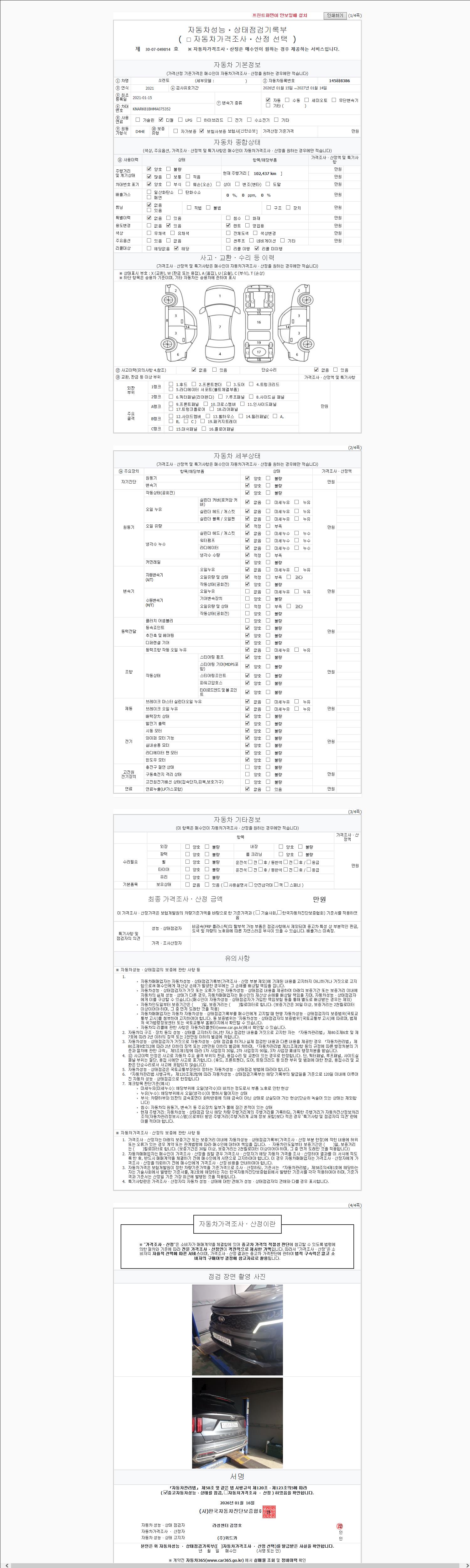 2. 차량 등록증이나 성능점검지 등을 상담자에게 요청및 확인하시고 사전에 미리 점검 하시기를 권유드립니다.