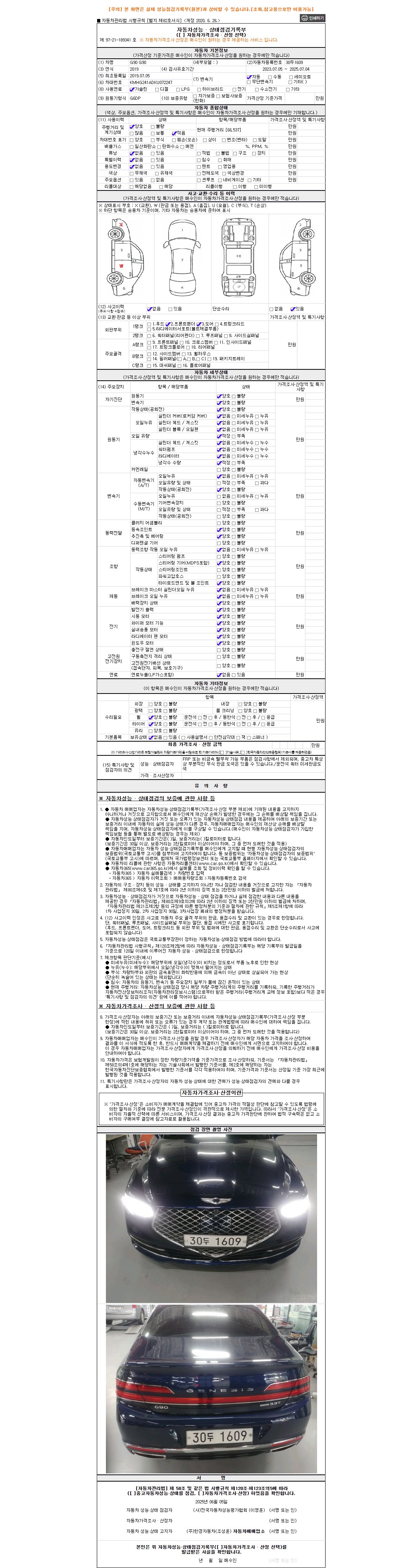 -중고자동차 매매업자를 통해 차량을 구입하실 경우 반드시 "중고자동차 성능, 상태점검 기록부"를 교뷰 받으셔야 하며, 매매업자는 반드시 의무 교부 하여야 압니다.