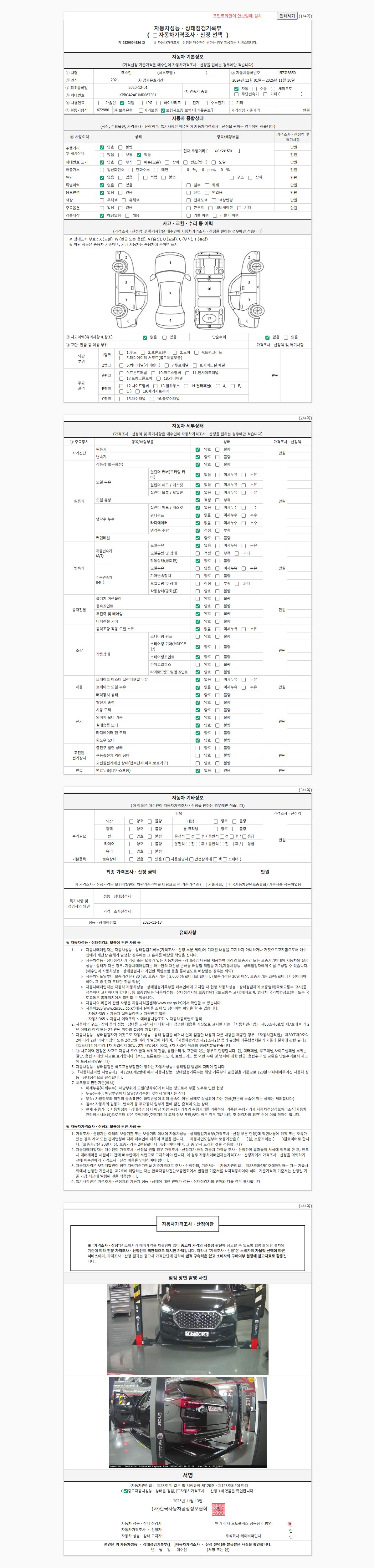2. 차량 등록증이나 성능점검지 등을 상담자에게 요청및 확인하시고 사전에 미리 점검 하시기를 권유드립니다.