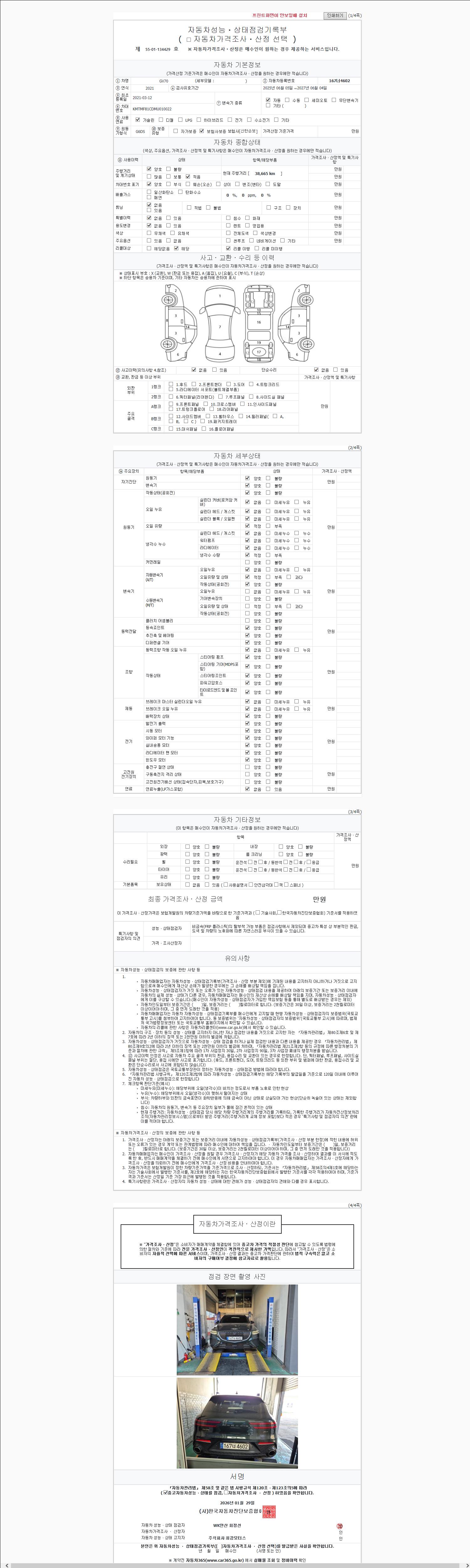 | 주행거리 | 38,665 km | 차량번호 | 167너4602 |