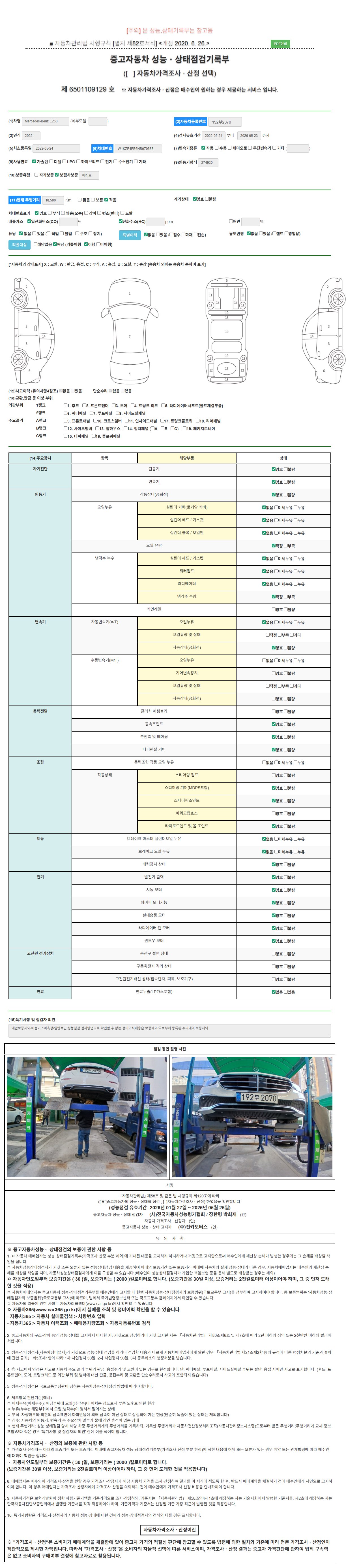 2. 차량 등록증이나 성능점검지 등을 상담자에게 요청및 확인하시고 사전에 미리 점검 하시기를 권유드립니다.
