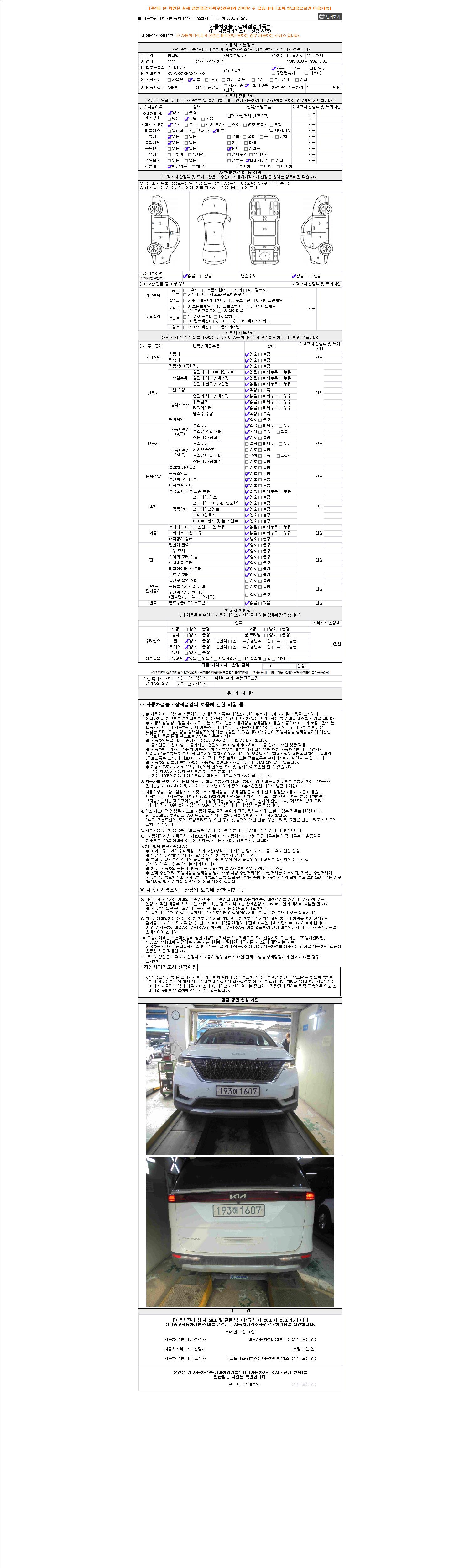 2. 차량 등록증이나 성능점검지 등을 상담자에게 요청및 확인하시고 사전에 미리 점검 하시기를 권유드립니다.