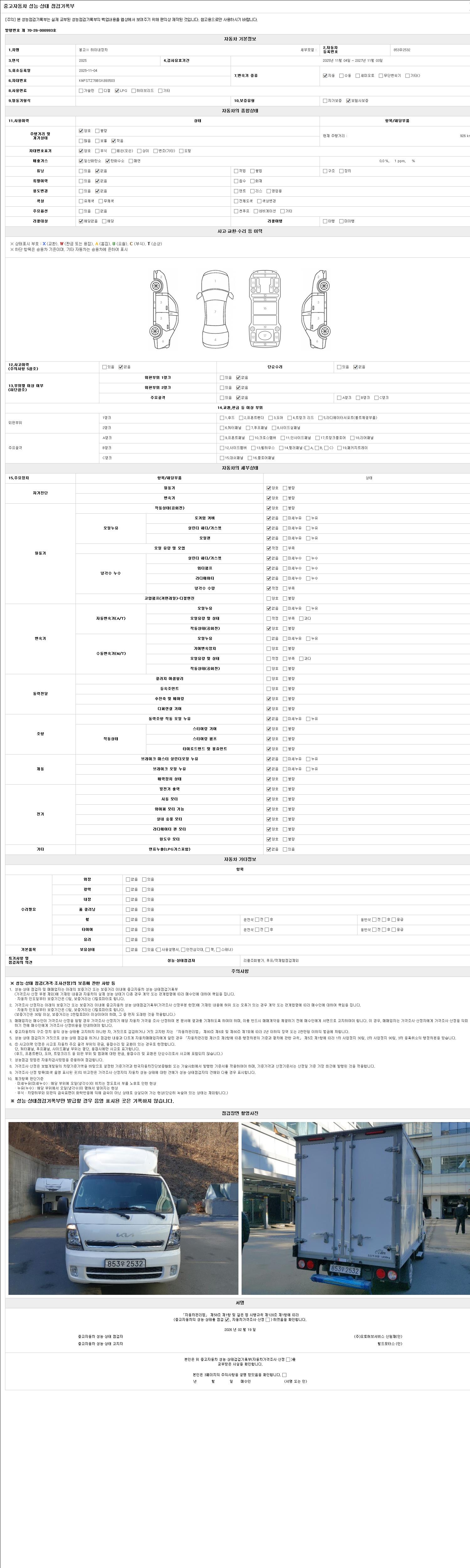2. 차량 등록증이나 성능점검지 등을 상담자에게 요청및 확인하시고 사전에 미리 점검 하시기를 권유드립니다.
