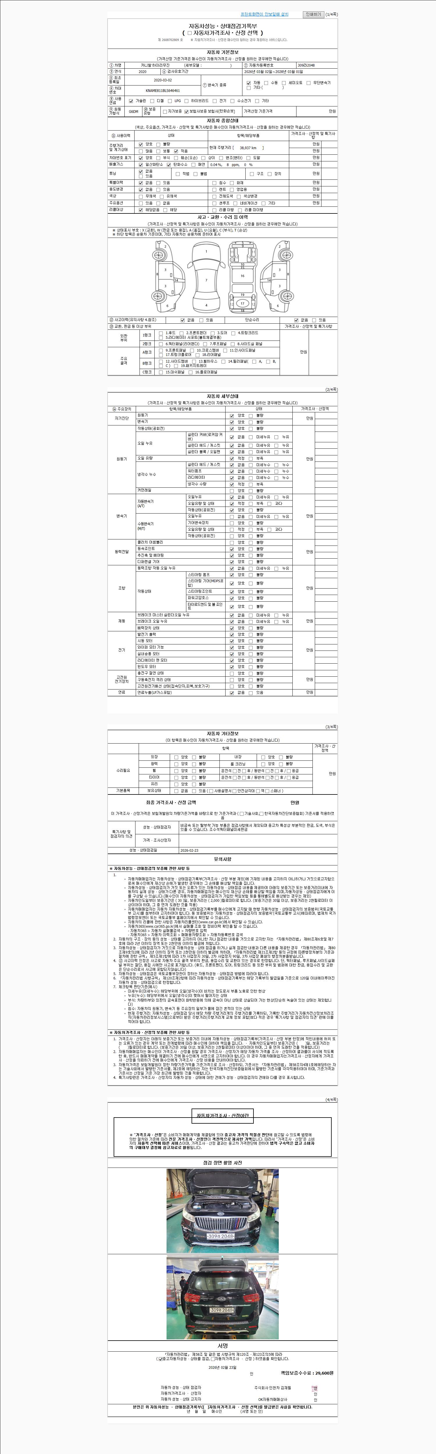 2. 차량 등록증이나 성능점검지 등을 상담자에게 요청및 확인하시고 사전에 미리 점검 하시기를 권유드립니다.