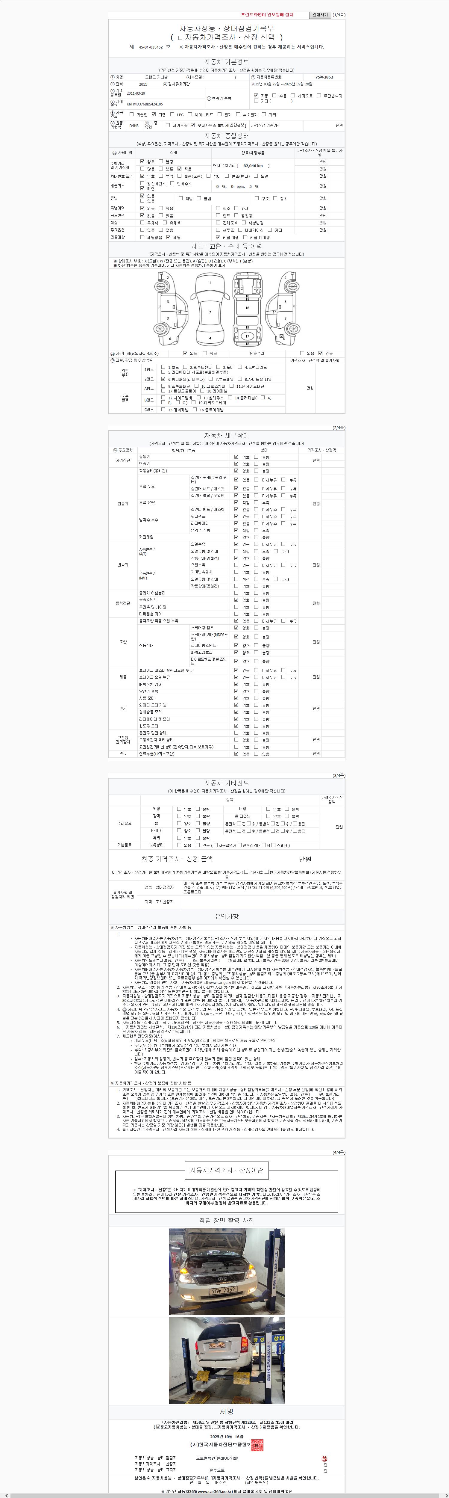 | 주행거리 | 82,046 km | 차량번호 | 75누2852 |