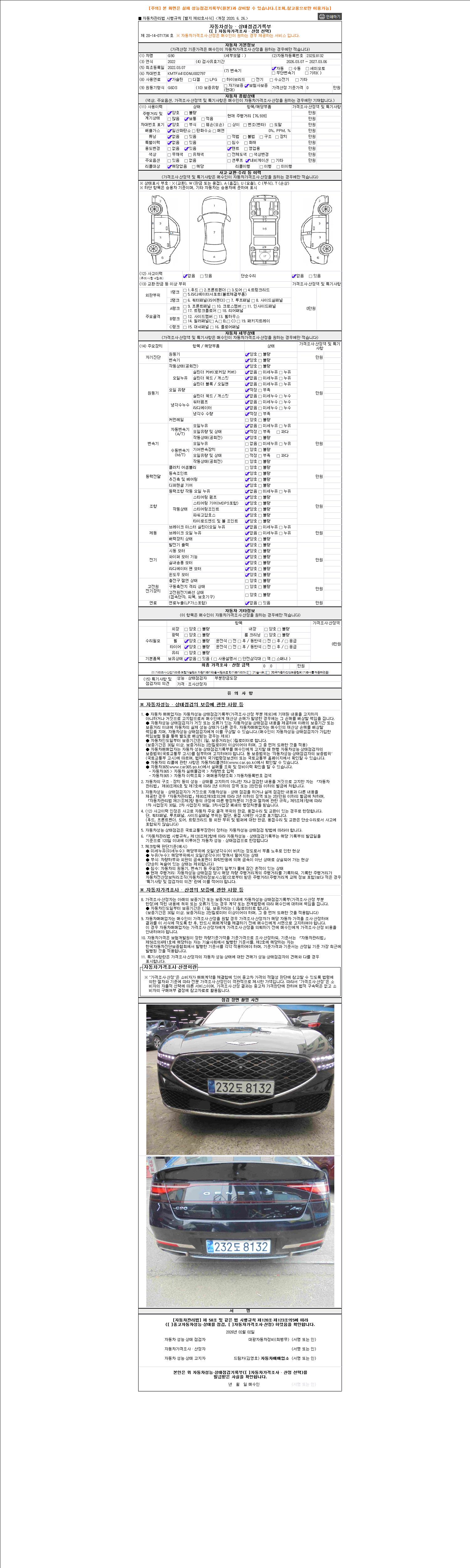 2. 차량 등록증이나 성능점검지 등을 상담자에게 요청및 확인하시고 사전에 미리 점검 하시기를 권유드립니다.