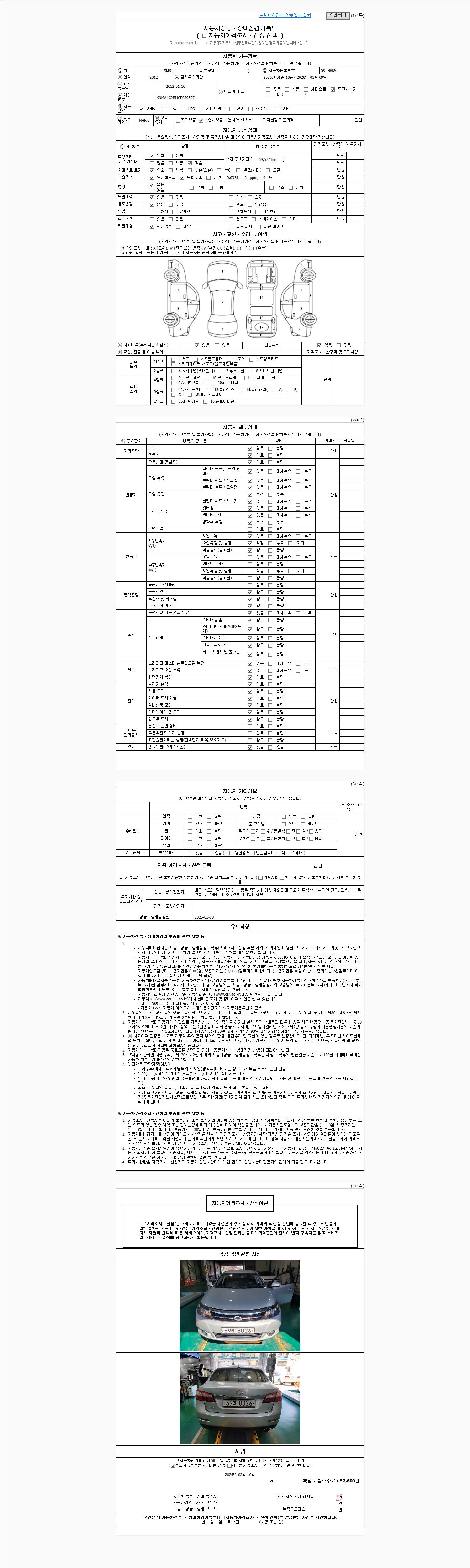 | 사고유무 | 성능기록부 참조 | 제시번호 | 제 2026012326 호 |