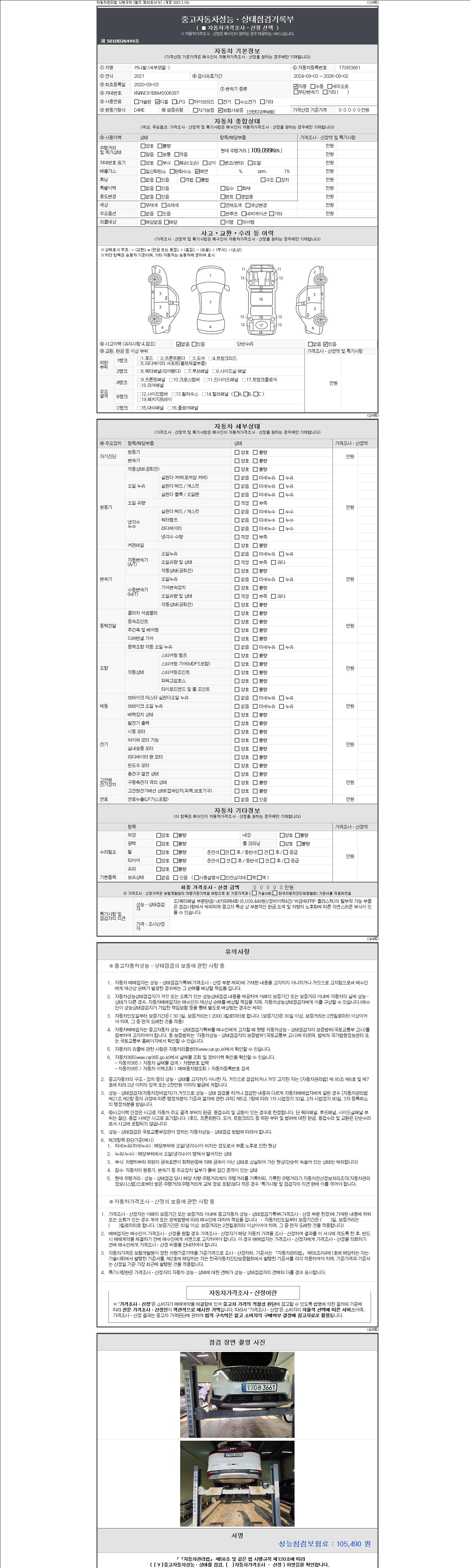 | 주행거리 | 109,093 km | 차량번호 | 170러3661 |