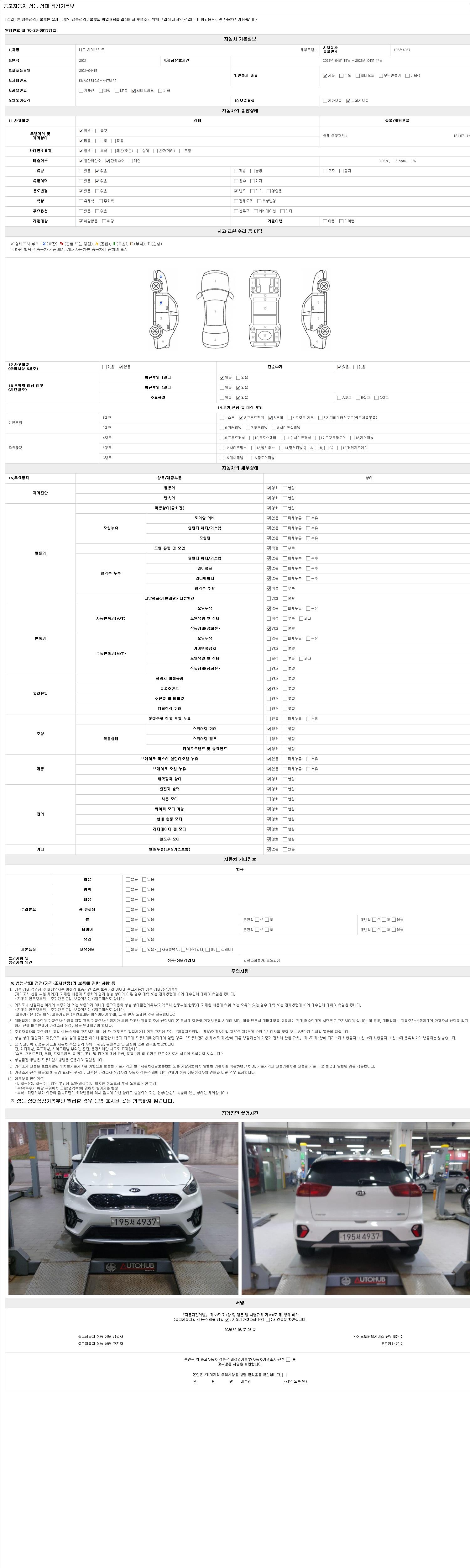 2. 차량 등록증이나 성능점검지 등을 상담자에게 요청및 확인하시고 사전에 미리 점검 하시기를 권유드립니다.