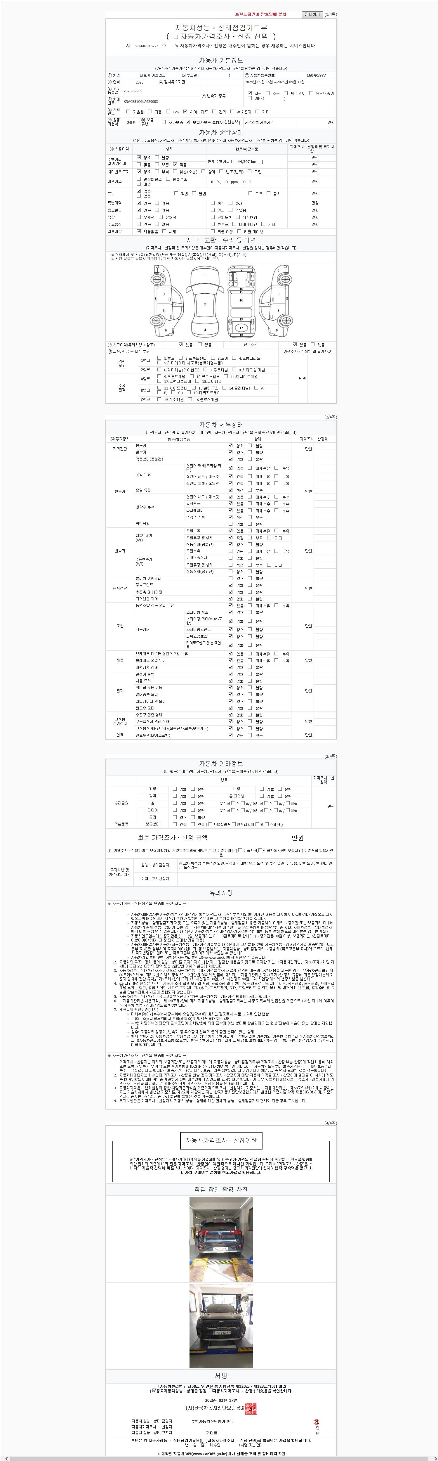 2. 차량 등록증이나 성능점검지 등을 상담자에게 요청및 확인하시고 사전에 미리 점검 하시기를 권유드립니다.