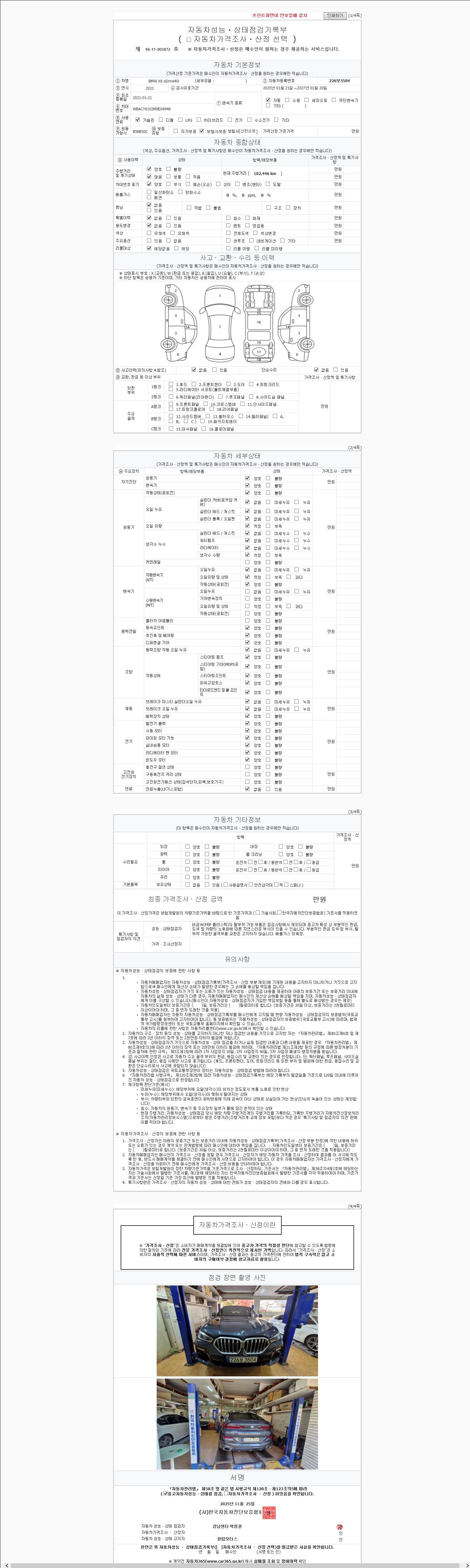 | 주행거리 | 102,446 km | 차량번호 | 226보3504 |