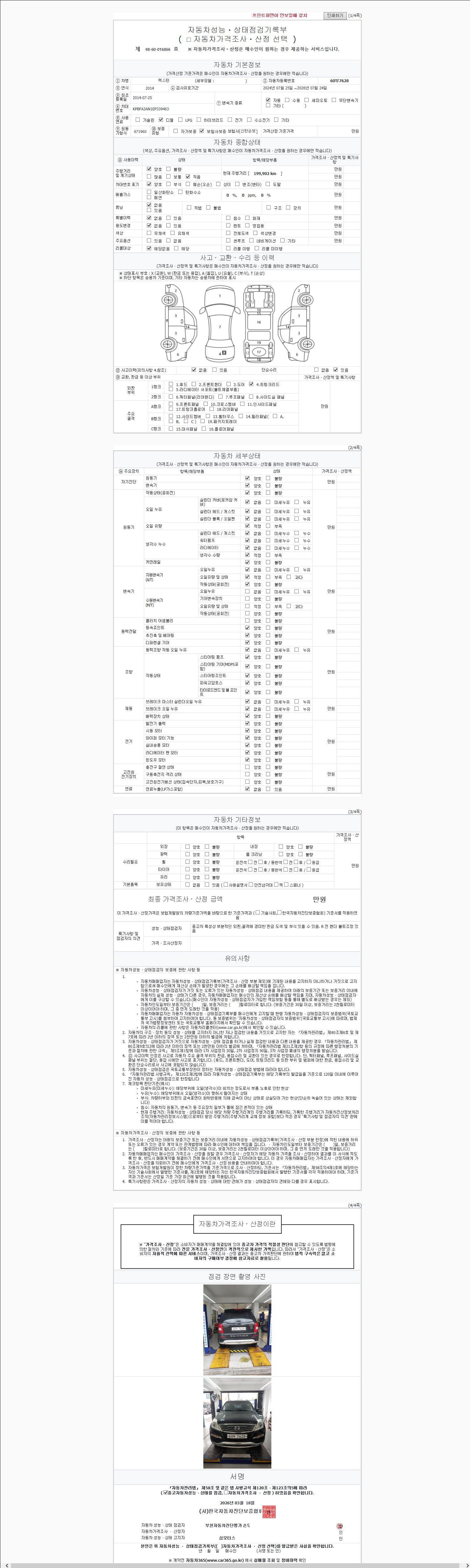 2. 차량 등록증이나 성능점검지 등을 상담자에게 요청및 확인하시고 사전에 미리 점검 하시기를 권유드립니다.