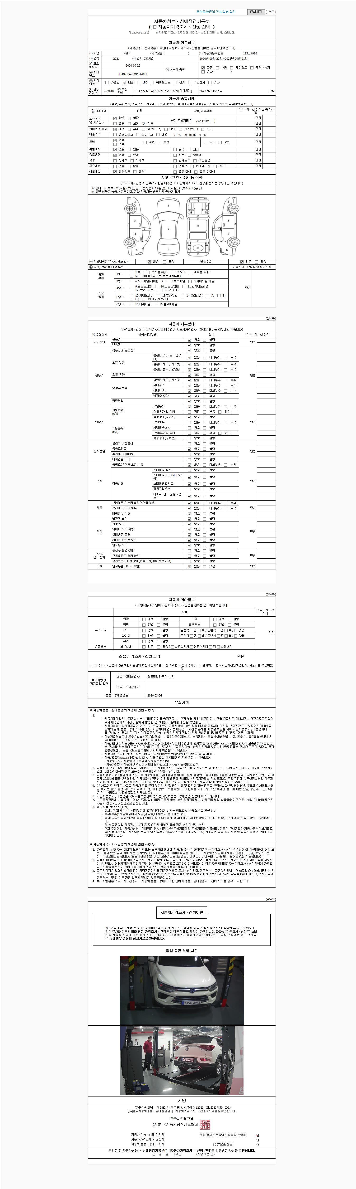 2. 차량 등록증이나 성능점검지 등을 상담자에게 요청및 확인하시고 사전에 미리 점검 하시기를 권유드립니다.