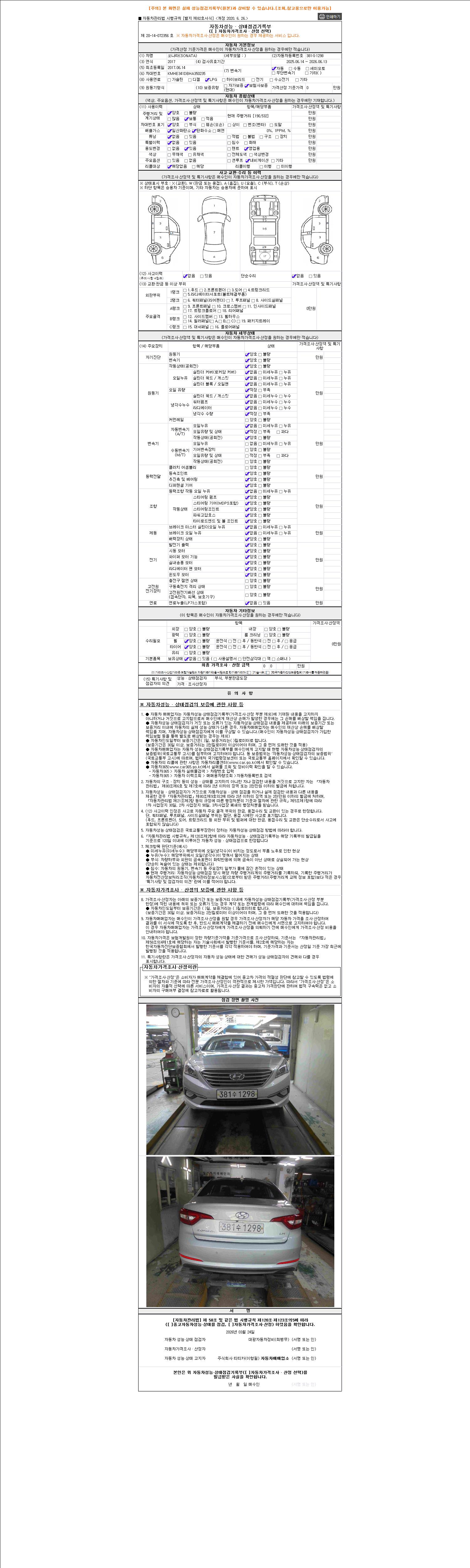 2. 차량 등록증이나 성능점검지 등을 상담자에게 요청및 확인하시고 사전에 미리 점검 하시기를 권유드립니다.