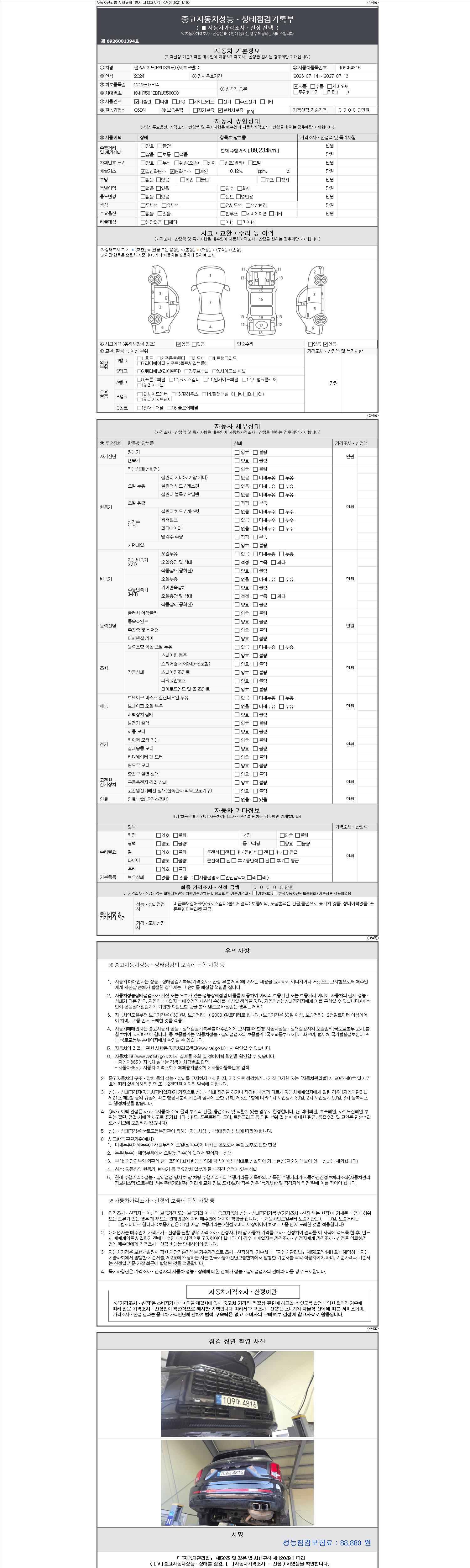 2. 차량 등록증이나 성능점검지 등을 상담자에게 요청및 확인하시고 사전에 미리 점검 하시기를 권유드립니다.
