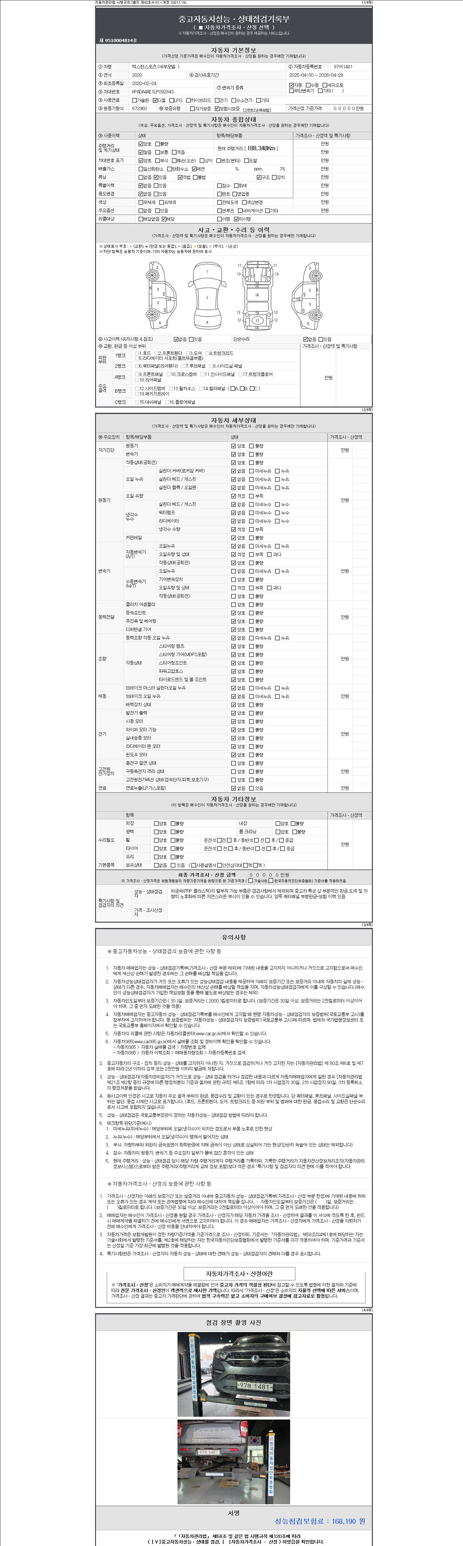 2. 차량 등록증이나 성능점검지 등을 상담자에게 요청및 확인하시고 사전에 미리 점검 하시기를 권유드립니다.