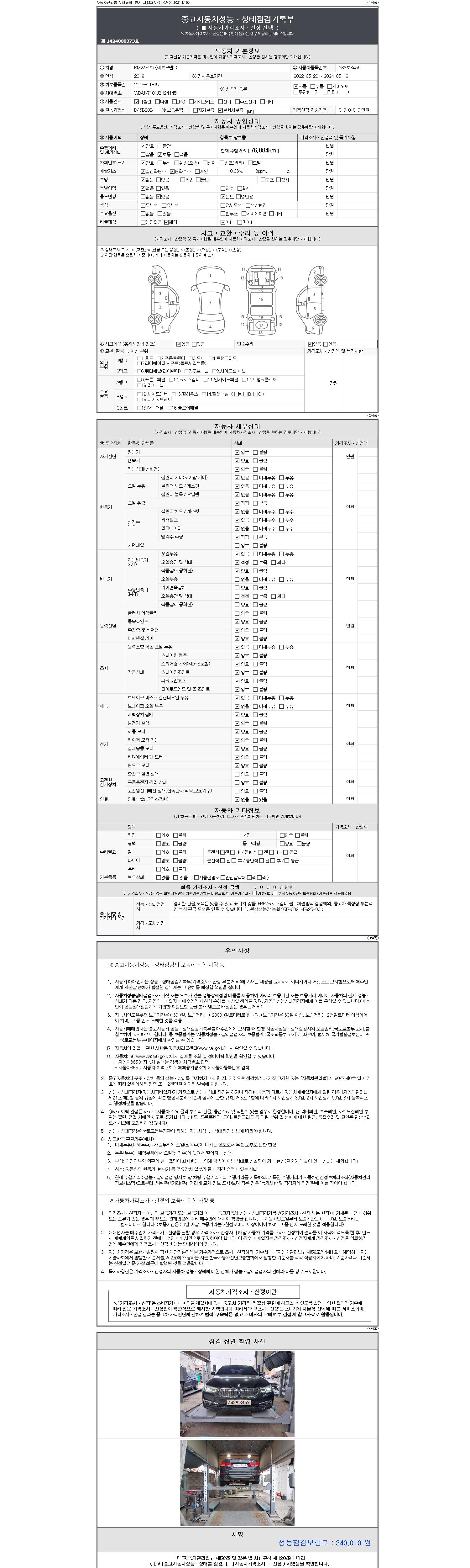 | 주행거리 | 76,084 km | 차량번호 | 388보8459 |