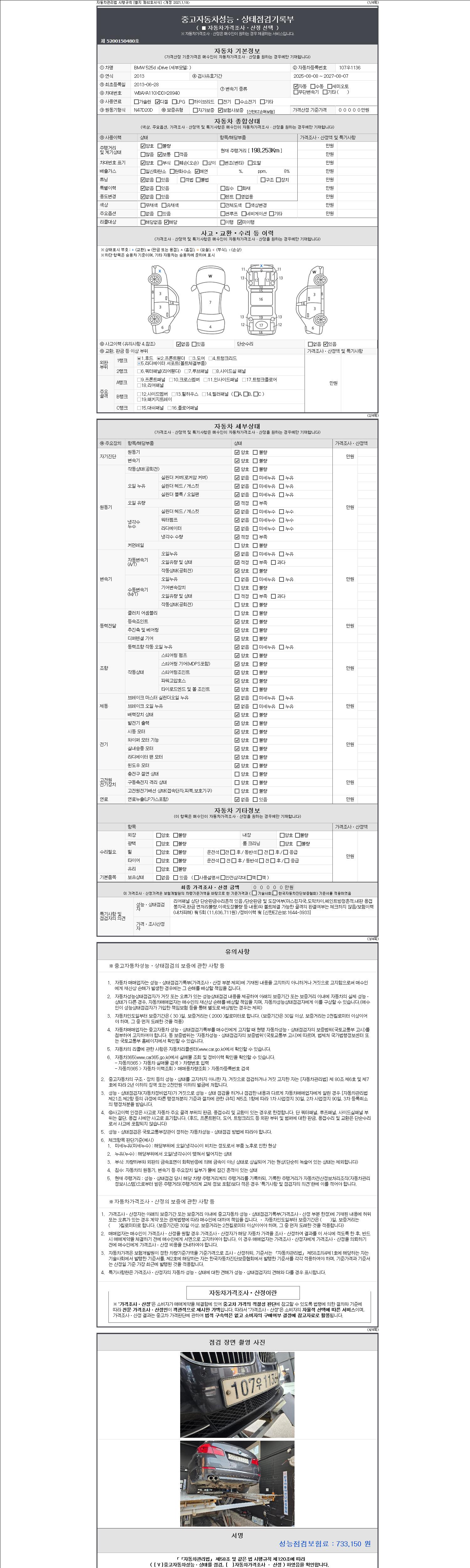 2. 차량 등록증이나 성능점검지 등을 상담자에게 요청및 확인하시고 사전에 미리 점검 하시기를 권유드립니다.