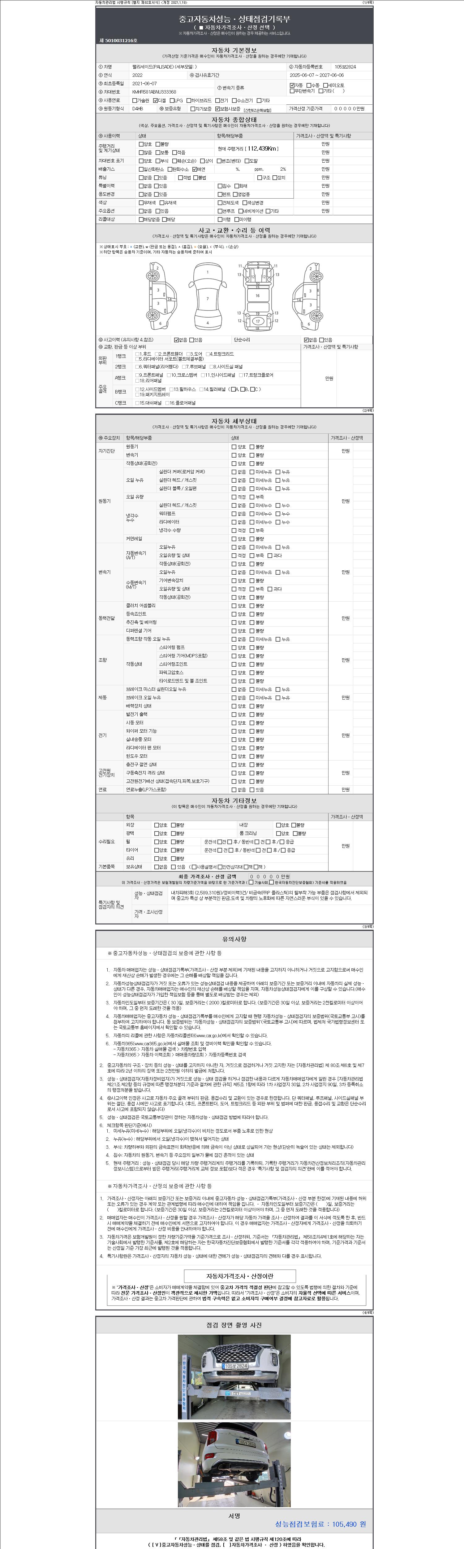 | 주행거리 | 112,439 km | 차량번호 | 105보2824 |