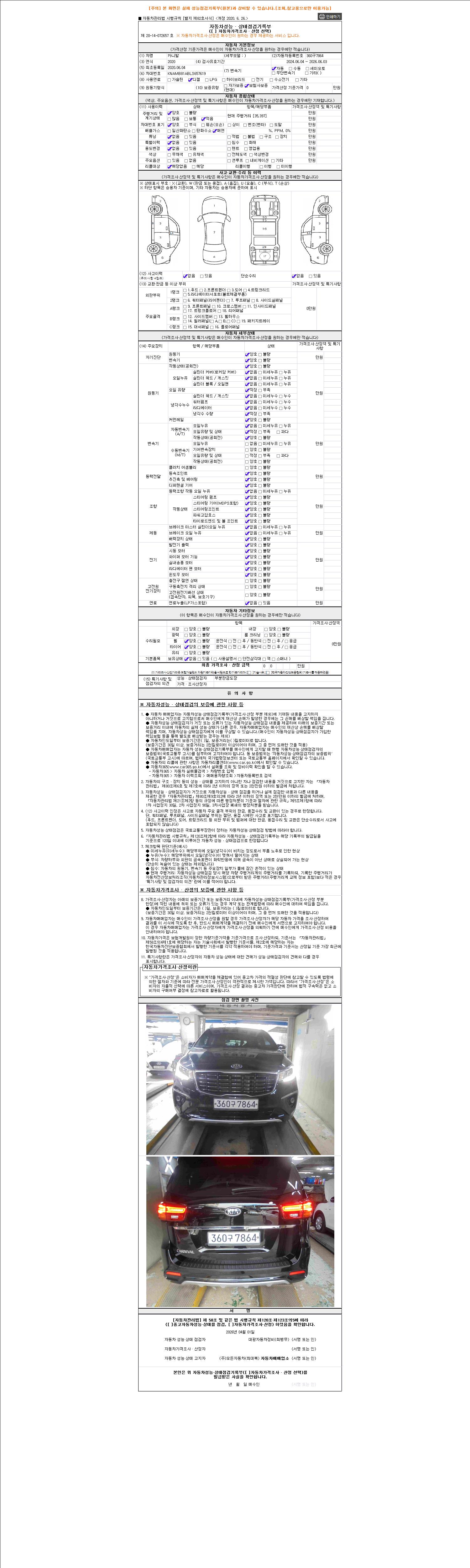 2. 차량 등록증이나 성능점검지 등을 상담자에게 요청및 확인하시고 사전에 미리 점검 하시기를 권유드립니다.