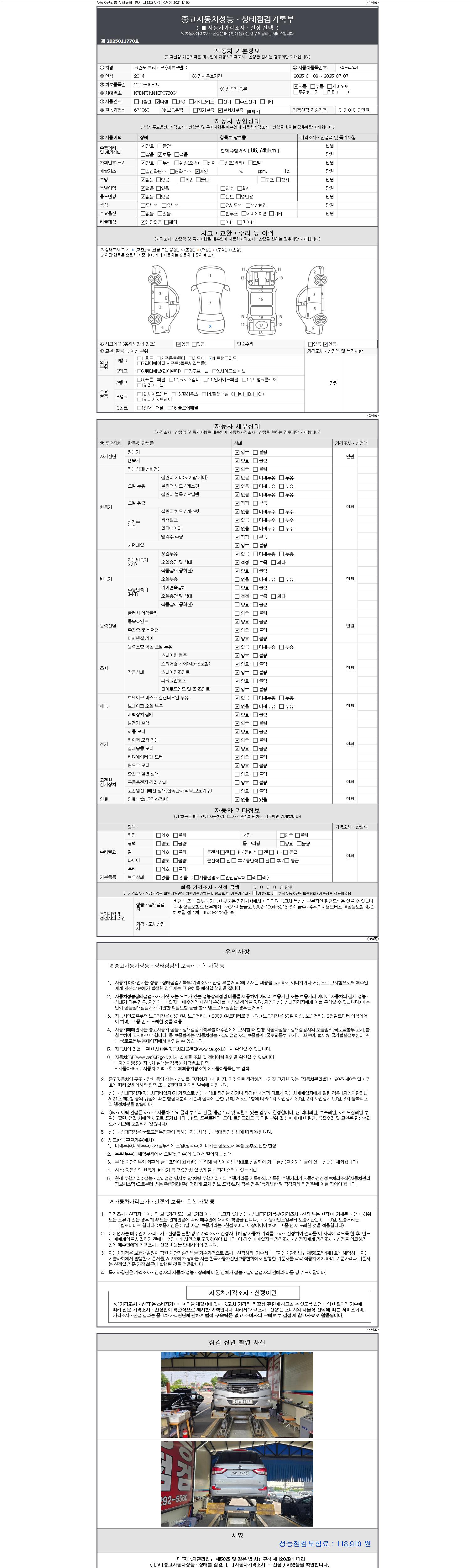 2. 차량 등록증이나 성능점검지 등을 상담자에게 요청및 확인하시고 사전에 미리 점검 하시기를 권유드립니다.
