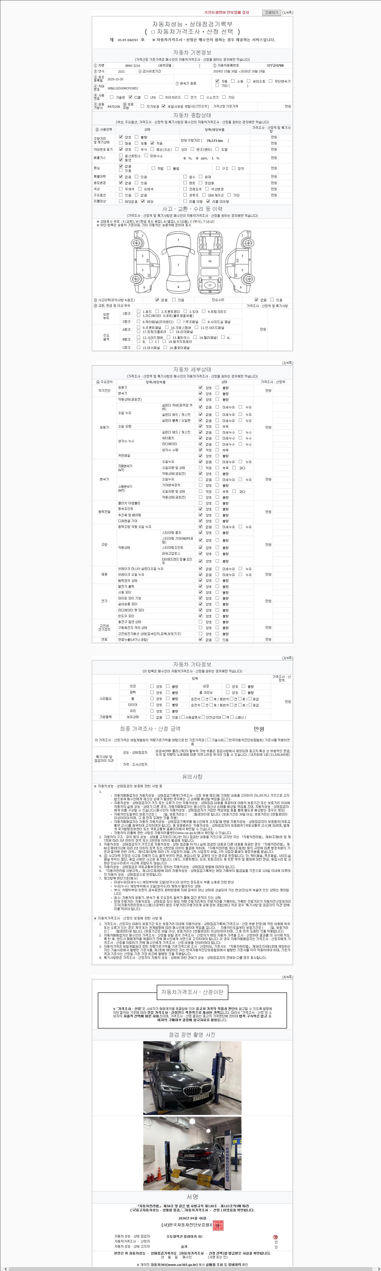 -중고자동차 매매업자를 통해 차량을 구입하실 경우 반드시 "중고자동차 성능, 상태점검 기록부"를 교뷰 받으셔야 하며, 매매업자는 반드시 의무 교부 하여야 압니다.
