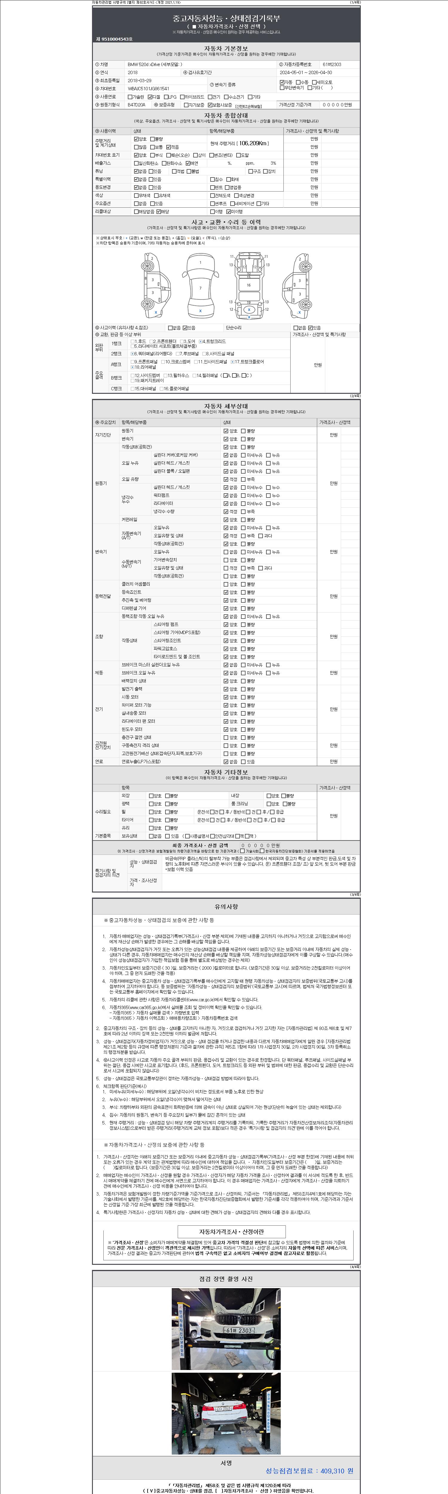 | 주행거리 | 106,209 km | 차량번호 | 61버2303 |