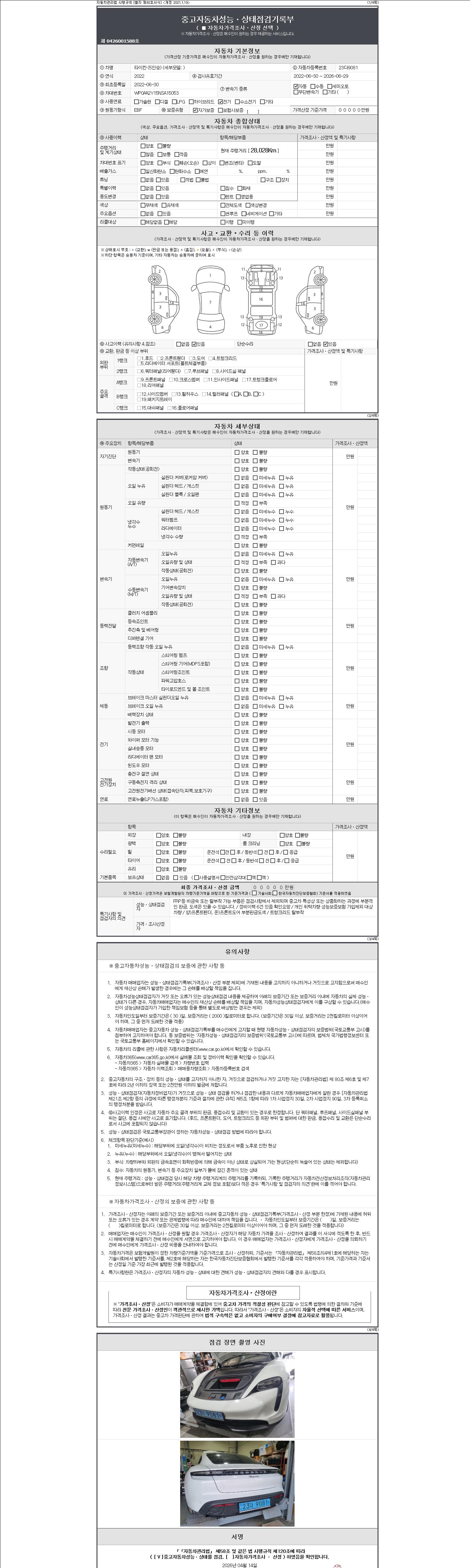 - 사고유무 : 성능기록부 참조