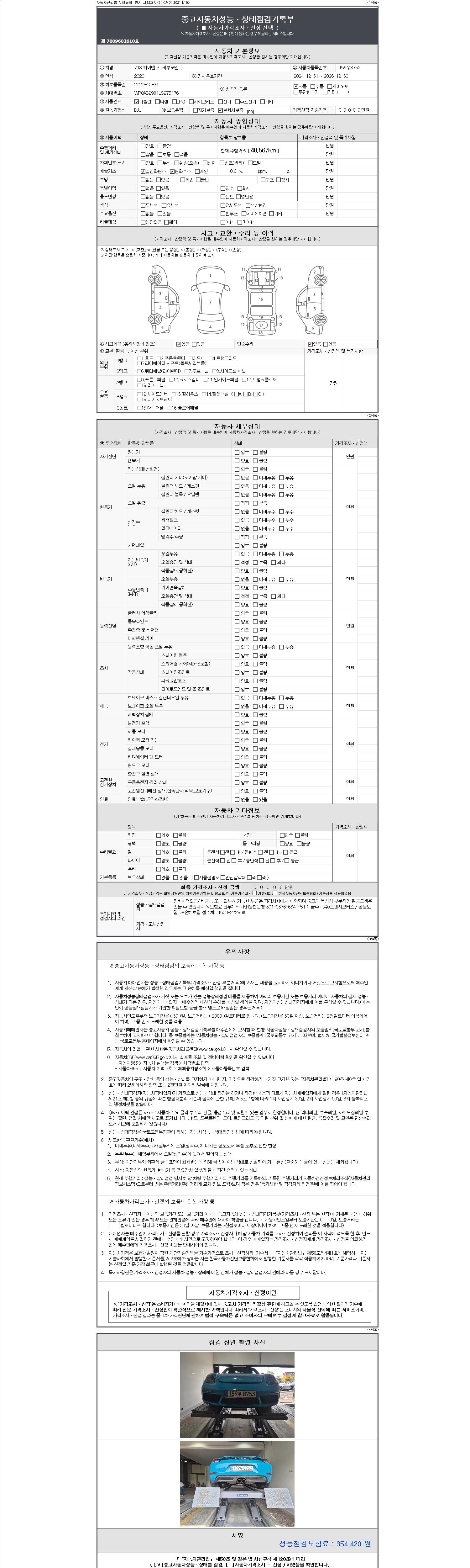 - 사고유무 : 성능기록부 참조