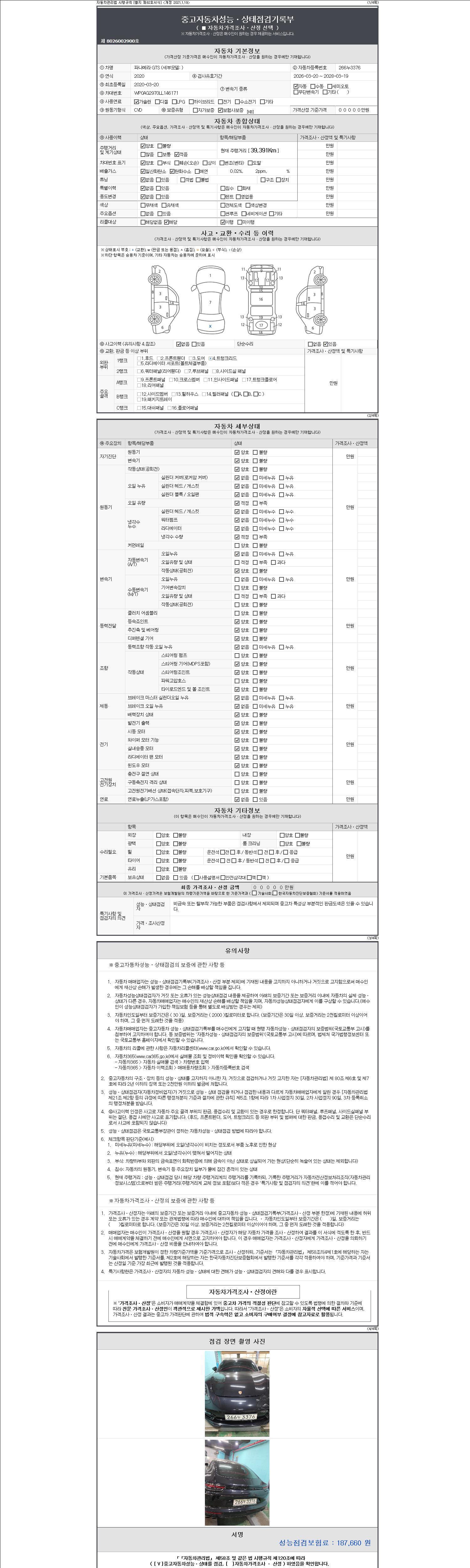 | 주행거리 | 39,391 km | 차량번호 | 266누3376 | 사고유무 | 성능기록부 참조 | 제시번호 | 제 2147483647 호 |