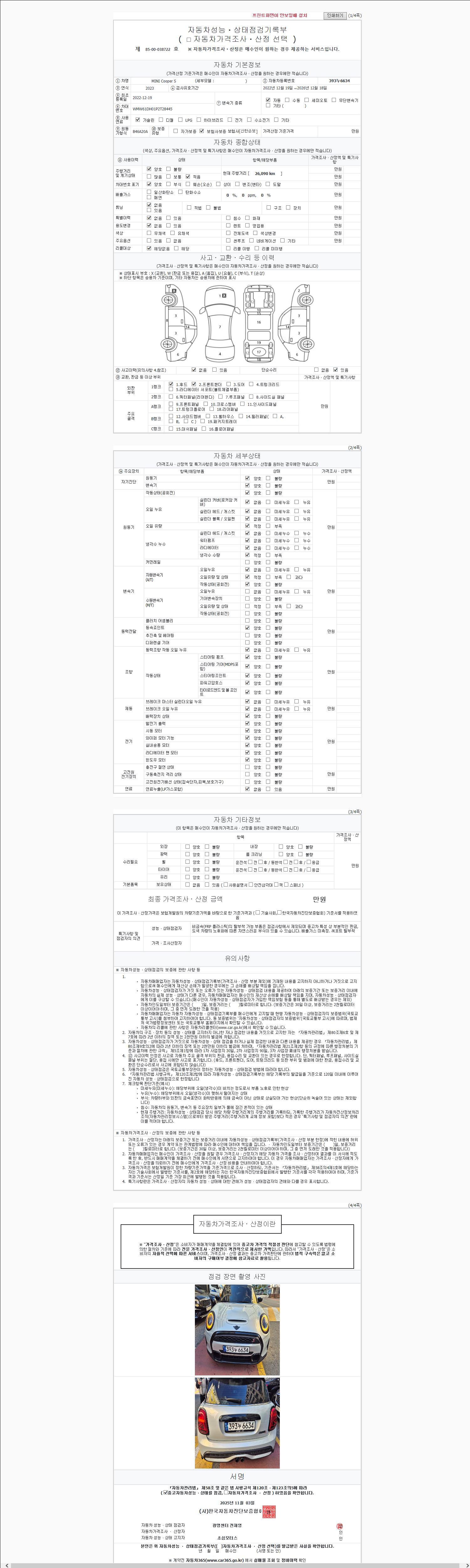 | 주행거리 | 26,090 km | 차량번호 | 393누6634 | 사고유무 | 성능기록부 참조 | 제시번호 | 제 2147483647 호 |