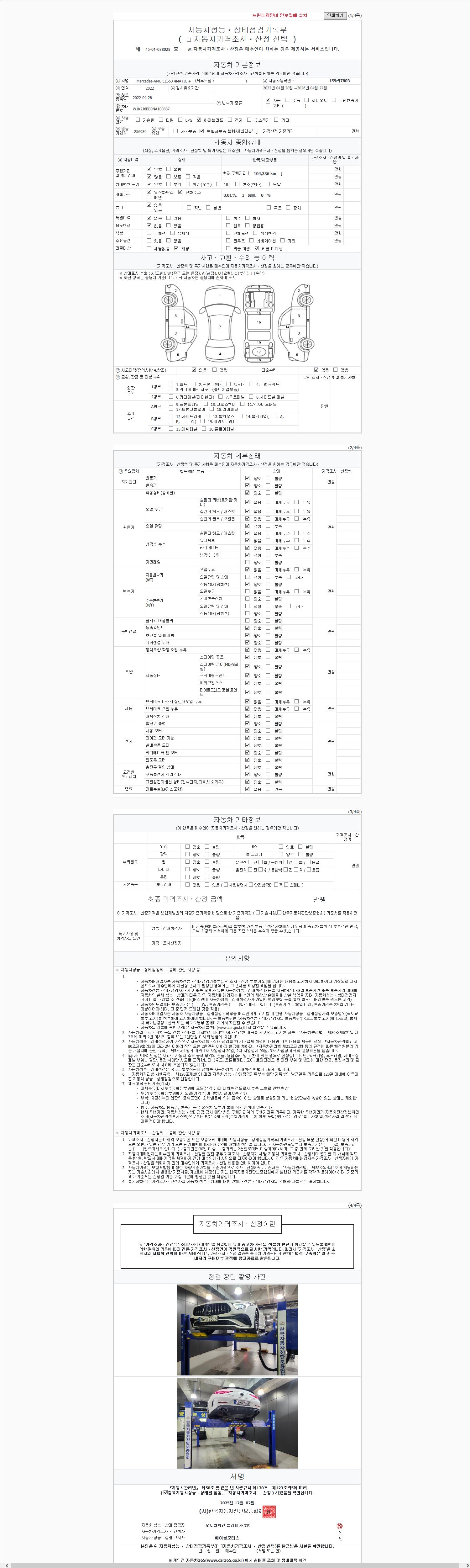 - 사고유무 : 성능기록부 참조