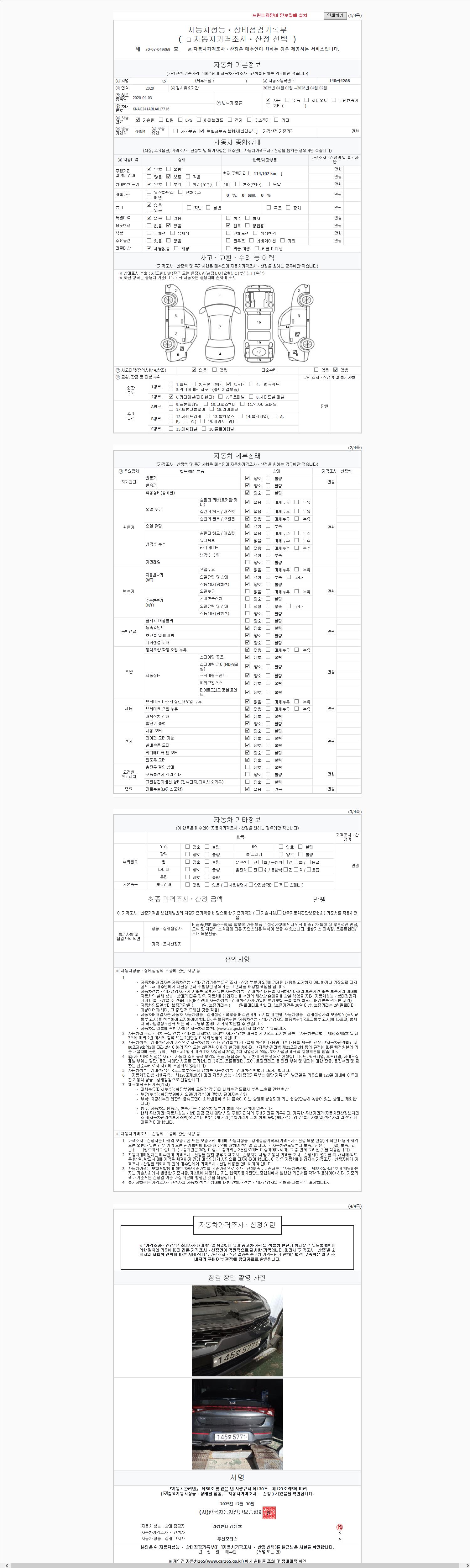 - 사고유무 : 성능기록부 참조