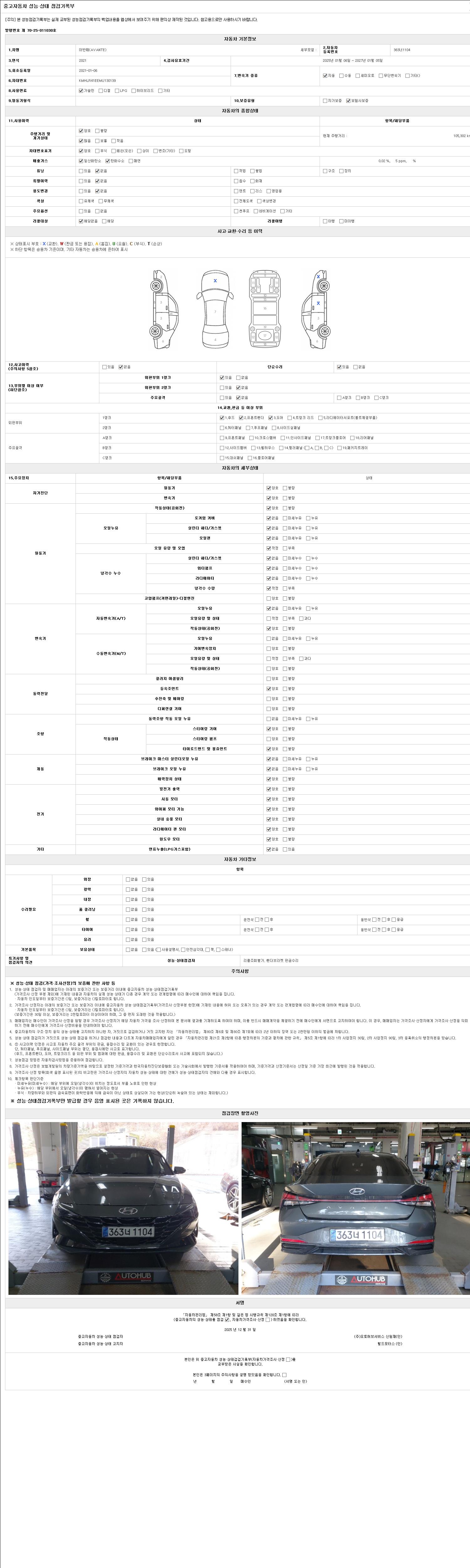 - 2. 차량 등록증이나 성능점검지 등을 상담자에게 요청및 확인하시고 사전에 미리 점검 하시기를 권유드립니다.