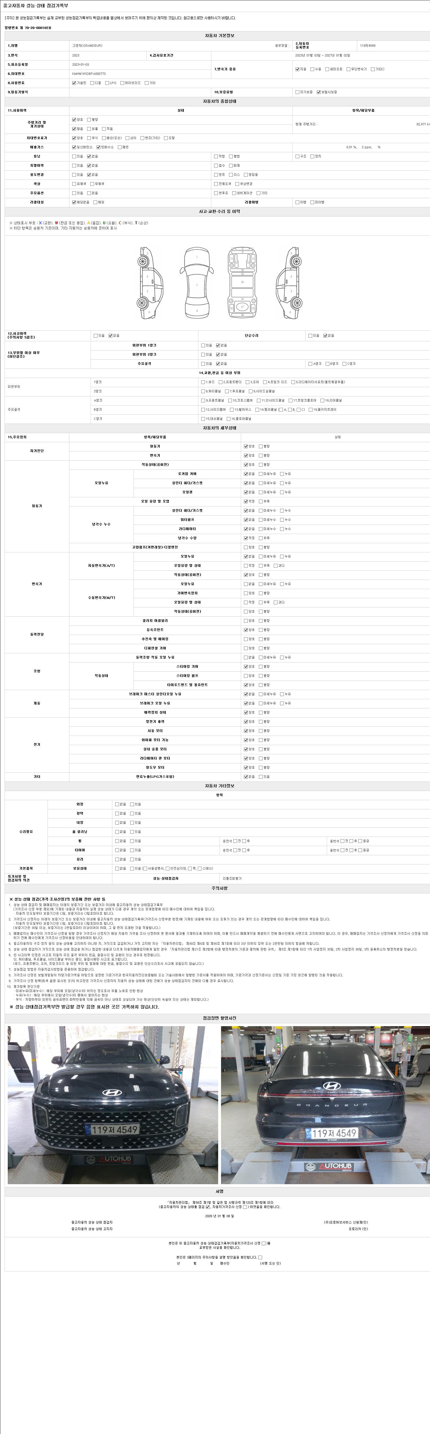 - 2. 차량 등록증이나 성능점검지 등을 상담자에게 요청및 확인하시고 사전에 미리 점검 하시기를 권유드립니다.