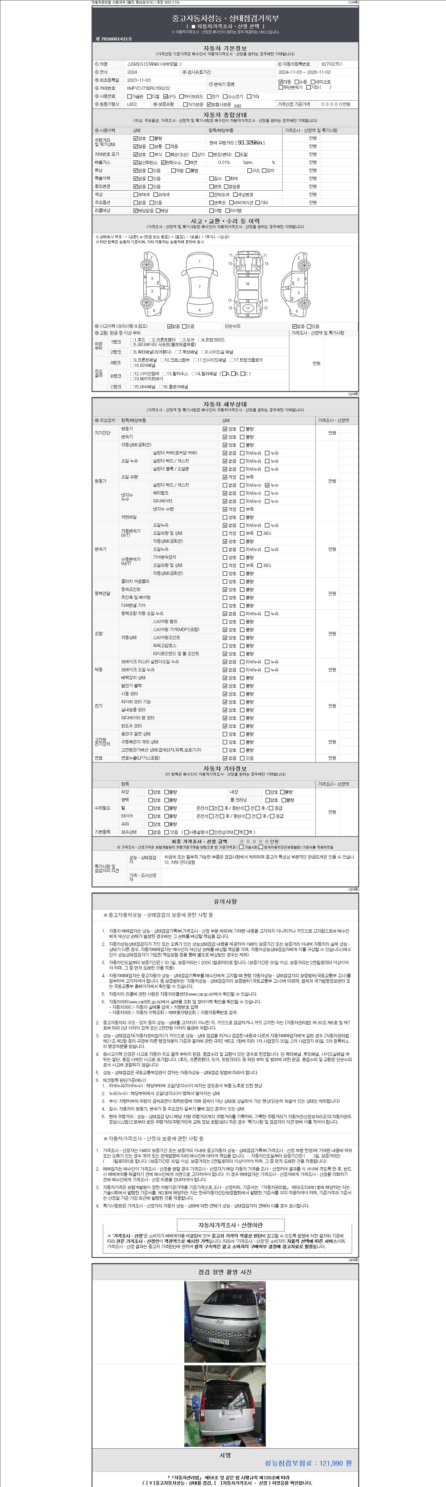 | 주행거리 | 93,326 km | 차량번호 | 827더2751 | 사고유무 | 성능기록부 참조 | 제시번호 | 제 2147483647 호 |