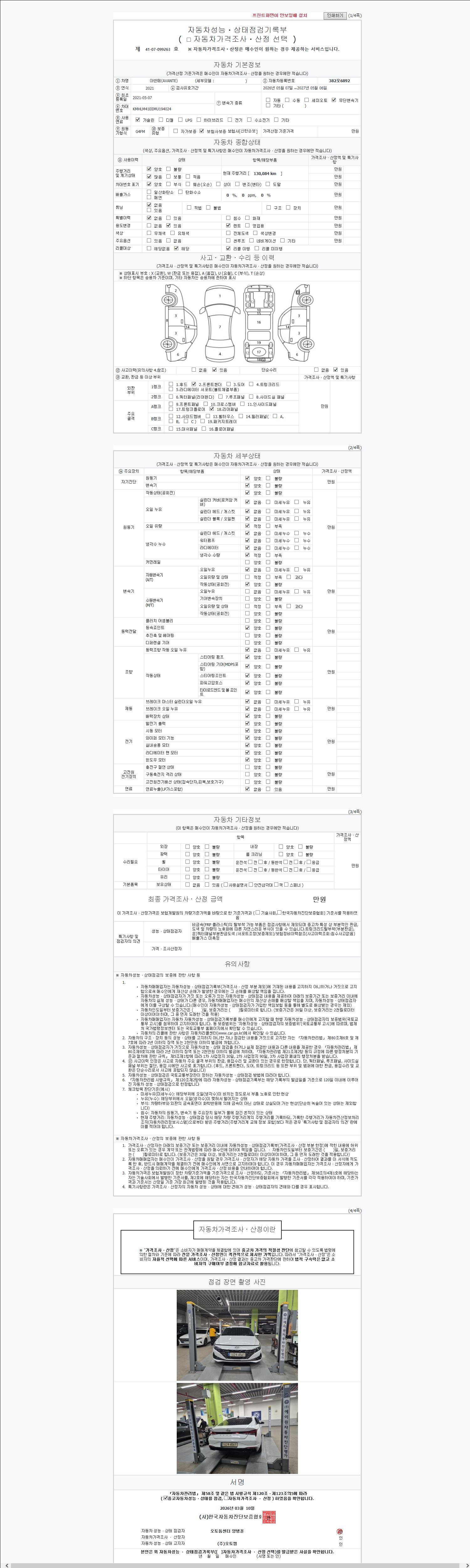 - 사고유무 : 성능기록부 참조