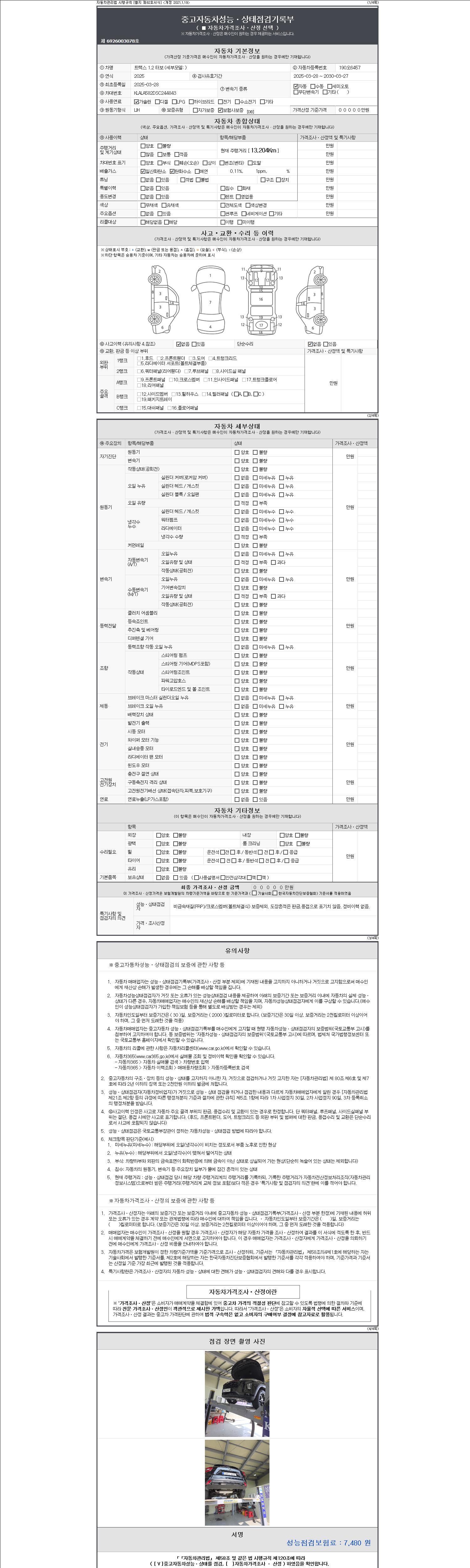 - 2. 차량 등록증이나 성능점검지 등을 상담자에게 요청및 확인하시고 사전에 미리 점검 하시기를 권유드립니다.