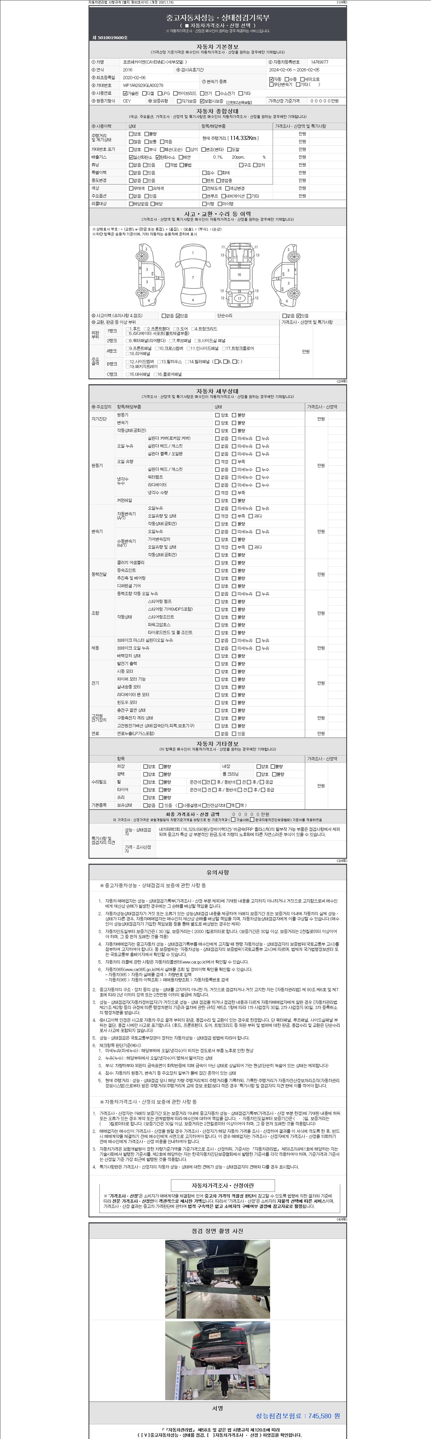 - 사고유무 : 성능기록부 참조