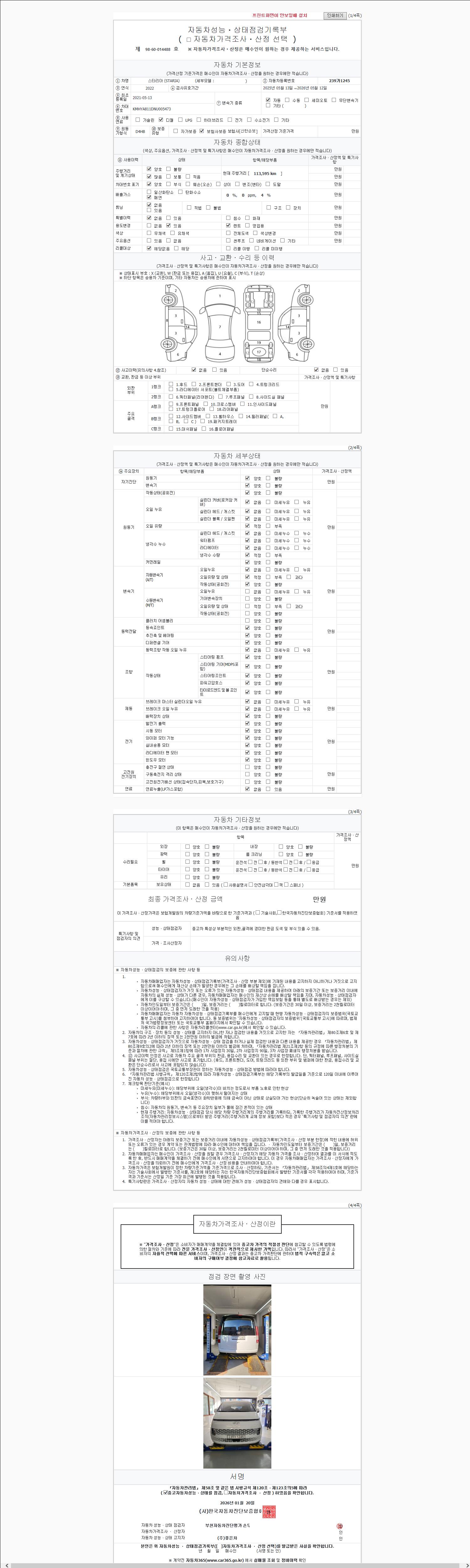 | 주행거리 | 110,000 km | 차량번호 | 239가1245 | 사고유무 | 성능기록부 참조 | 제시번호 | 제 2026006221 호 |